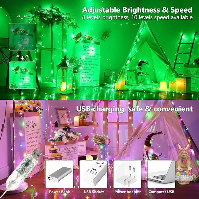 🔸Weather-Resistant & USB Compatible for All Spaces:Built with durable, splash-proof, and waterproof protection, these curtain lights can safely be used outdoors on balconies, patios, and gardens as well as indoors in bedrooms, dorm rooms, or offices, while the USB-powered design ensures compatibility with power banks, laptops, adapters, and hubs, giving you versatile placement options without worrying about batteries or overheating.