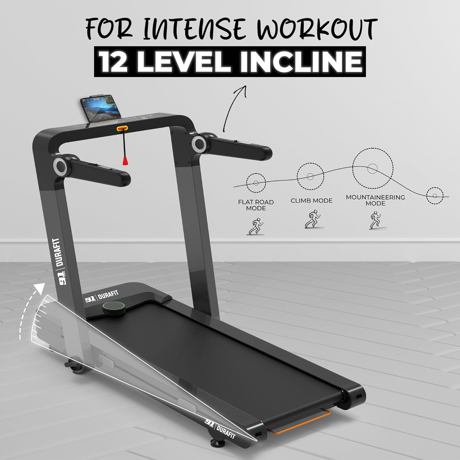 【Heavy-Duty Treadmill with 12 Preset Programs】 – Built for durability, this treadmill supports up to 120 kg for walking and 90 kg for running. Its sturdy frame ensures safety for all users. With 12 preset workout programs, it helps you achieve goals like weight loss, endurance, and improved cardio through varied speed and intensity sessions.