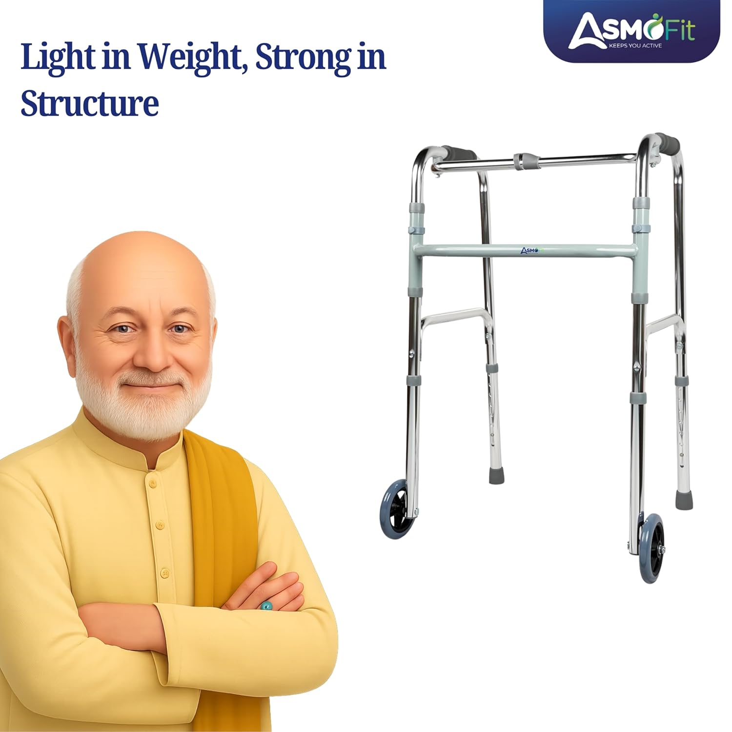 Foldable & Travel-Friendly Design :-This walker features an easy-to-use push-button folding mechanism, allowing quick and hassle-free folding for storage or transport. Its lightweight matte-finished frame adds to its portability, making it ideal for travel and compact living spaces. The foldable design also ensures it can be conveniently stored when not in use, without occupying too much space.