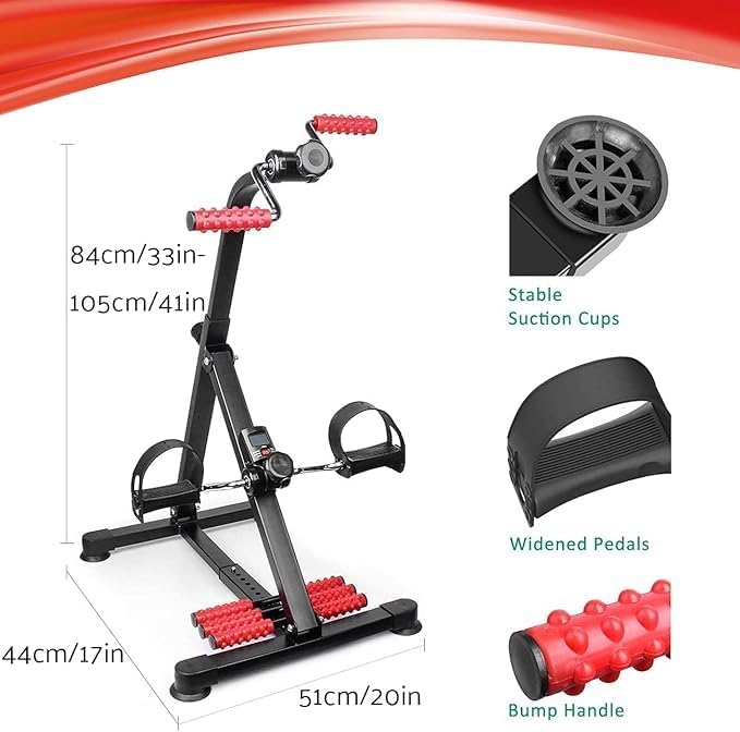 Height Adjustable: Pair your pedal machine with the chair of your choice. Our pedal exerciser is height adjustable with a wide range from 29.5″ to 38.2″ (75-97 cm) and a length from 17.3″ to 22″ (44-56 cm). It suits sofas and caters to bodies of all shapes and sizes.
