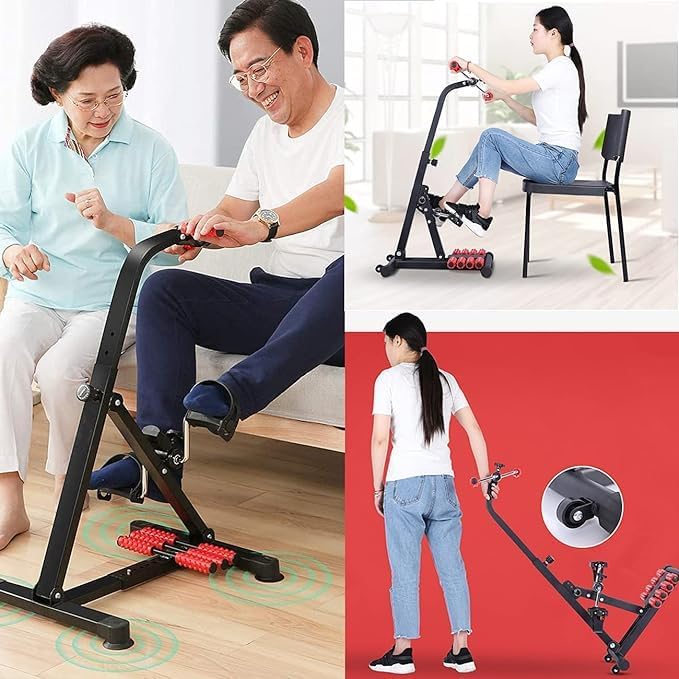 Seated Pedal Exerciser: This seated leg exerciser offers low-impact leg, knee, and foot exercise on a comfy bike featuring two rolling foot massage pedals. Excellent for seniors, you can stay in shape without leaving your favorite chair.