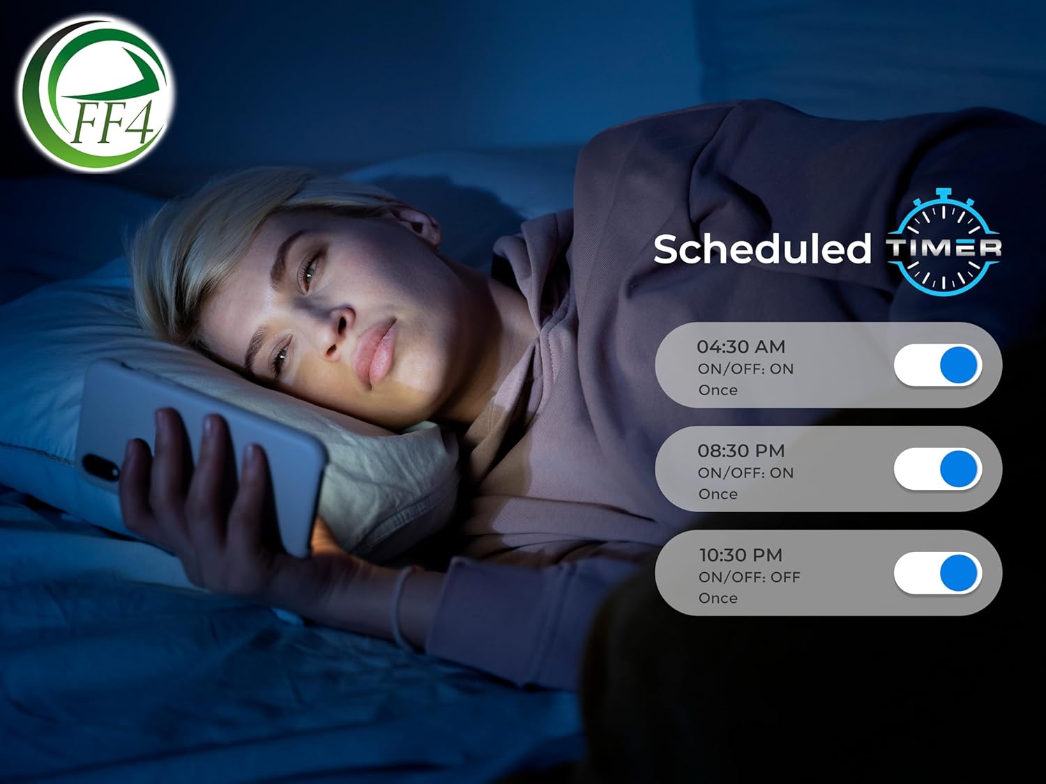 Experience the ultimate convenience of automated lighting with the Eff4 Bulb Timer. Easily schedule your lights to turn on and off at specific times. Whether you want to simulate your presence on vacation, wake upon time, best for a relaxing evening, the Eff4 Bulb Timer has you covered.