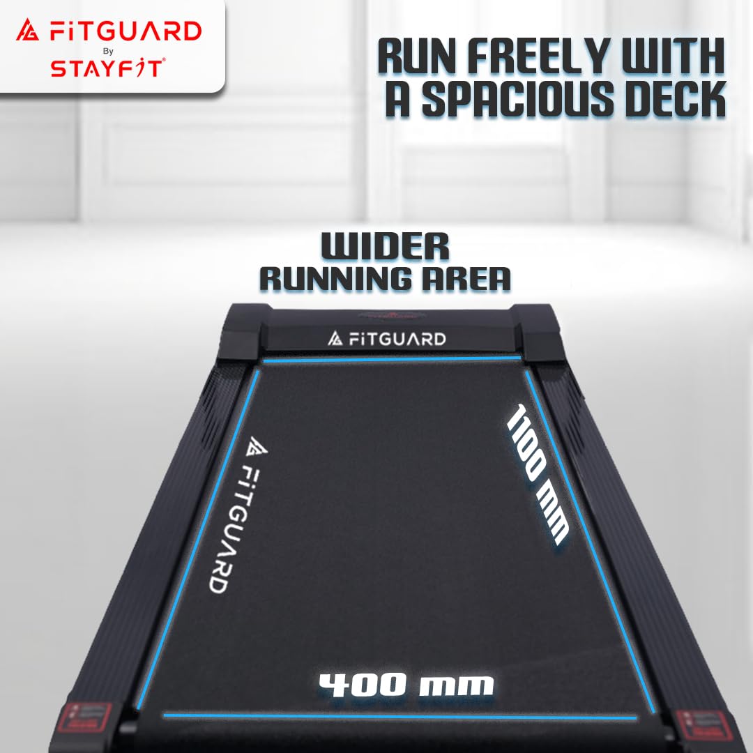 “Stay fit at home with FITGUARD Motorized Treadmill – durable, smart, and perfect for cardio, weight loss, and daily workouts.