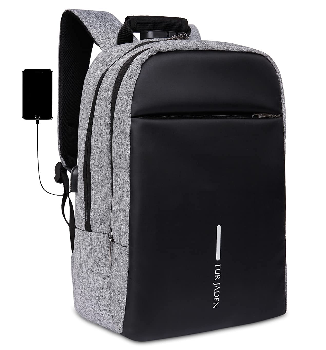 Stay organized all day with a durable and lightweight backpack from Fur Jaden. This back pack is a stylish and functional accessory for men and women. Can add admiration to an appealing and daring personality with a remarkable aesthetics and functionality. This backpack features an anti-theft design. You can also charge your phone on the go and organize your stuff like pro. Fur Jaden functional back pack is apt to protect your gadgets and belongings from being stolen while you travel, thanks to its special anti-theft design. Now keep your belongings safe with style. The backpack features multiple compartments that you may use for your laptop and other essentials. A remarkable feature of this backpack allows you to charge your phone while you are on the move. With an attached charging dock in the back you may connect a portable power bank with ease. Weighing about 600grams, this backpack is lightweight. The backpack is able to house a laptop of up to 15.6 inches and has seven inner compartments to place your other essentials. Made from durable quality polymer this Fur Jaden back pack is sturdy and reliable. Flaunt this bag with style and low maintenance as this bag is washable. This backpack is also suitable for school or college. The straps are designed to distribute the weight equally on each shoulder preventing any sort of discomfort. Use this back pack for office, college/school or during travels.