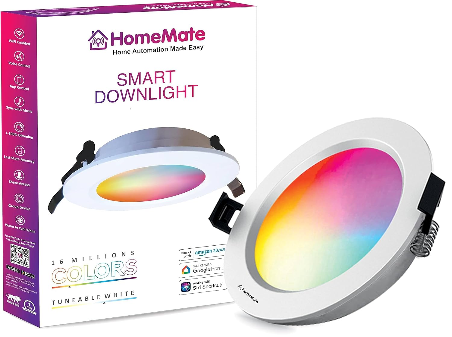 Ready for the Smart Home Compatiblity: Supports Alexa and Google Home Assistant Group Control : Control Multiple Smart Downlight individually or together as a group. Save Electricity, Save Money : You can schedule downlight to minimize the energy use in your home No Hub Required: The HomeMate Smart Downlight simply connects to your home network.