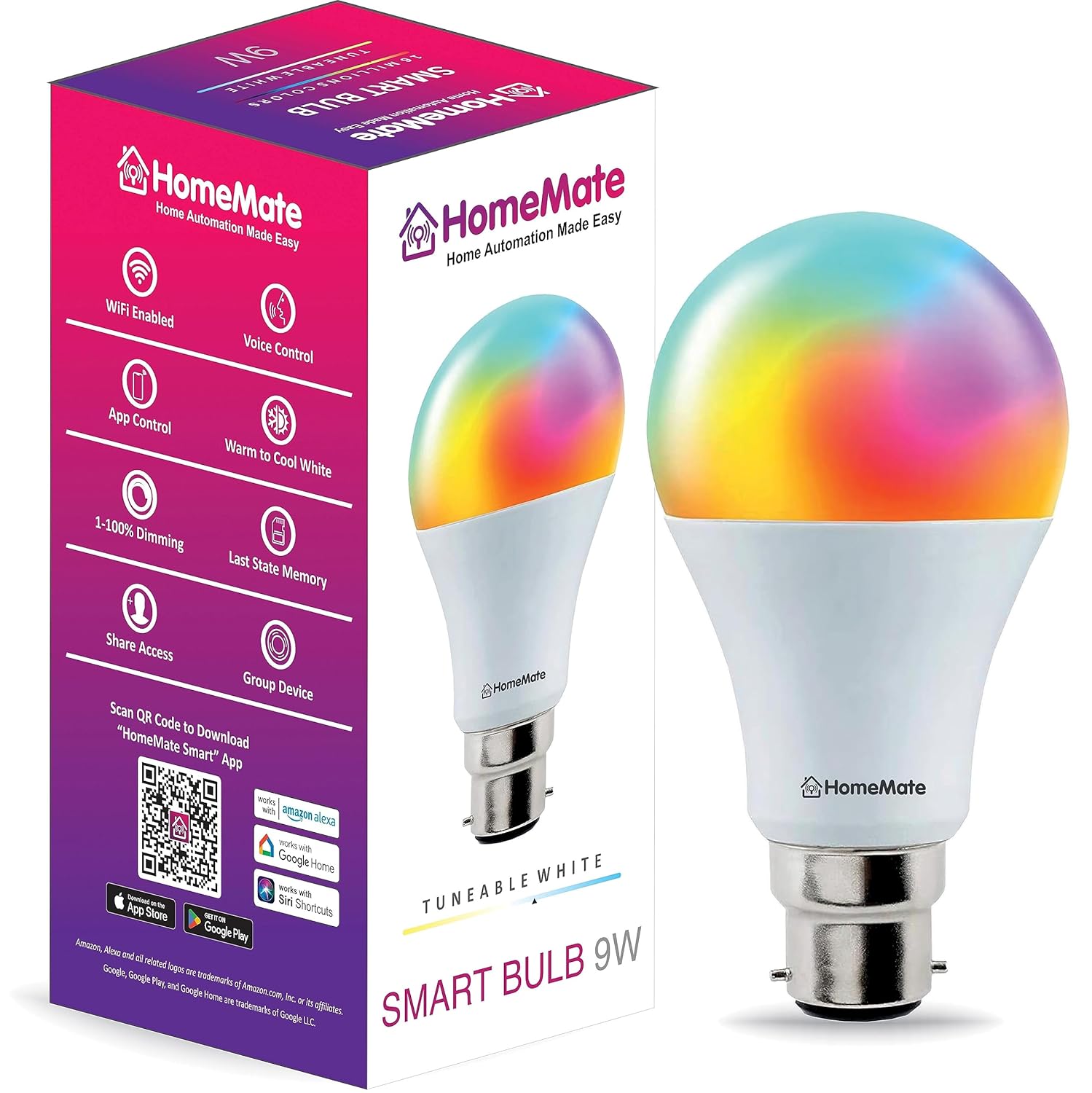 HomeMate Wi-Fi RGB+CCT Smart LED Bulb | 9 Watt, Mu …