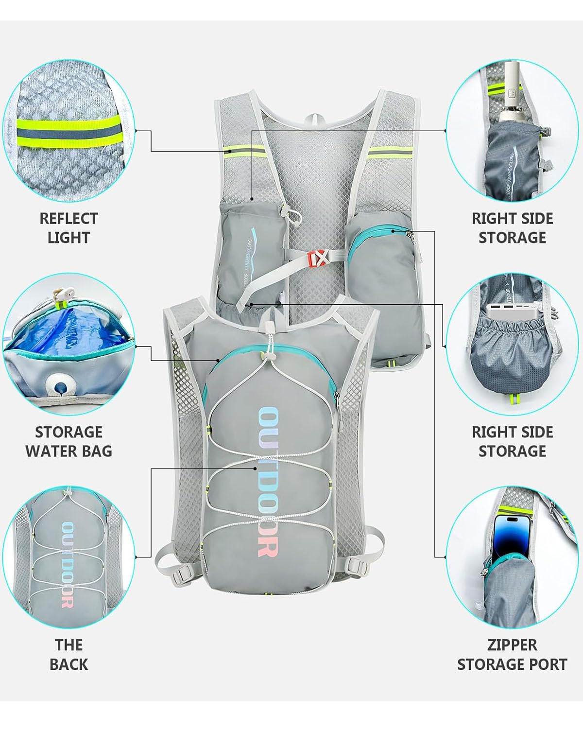 Easy to Use: The hydration pack is designed for quick and hassle-free setup; Simply adjust the straps, and you’re ready to go; The intuitive design ensures a seamless experience for both beginners and seasoned runners.