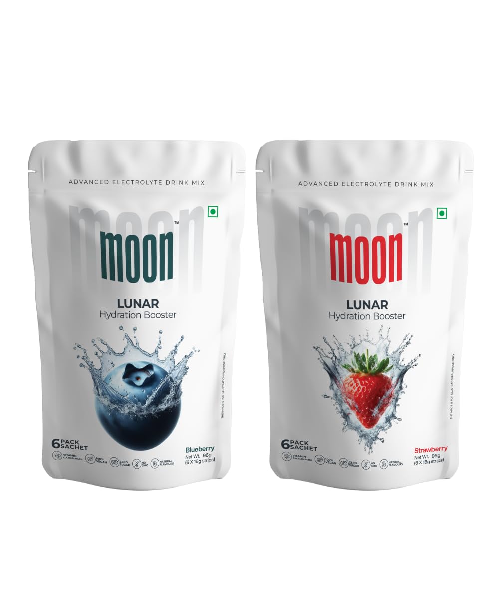 Enhanced Hydration: Formulated with a perfect balance of electrolytes and minerals, the Moon Lunar Blueberry + Strawberry Hydration Booster is designed to optimize hydration more effectively than water alone. It helps replenish fluids and electrolytes lost during exercise, ensuring you stay properly hydrated throughout the day.