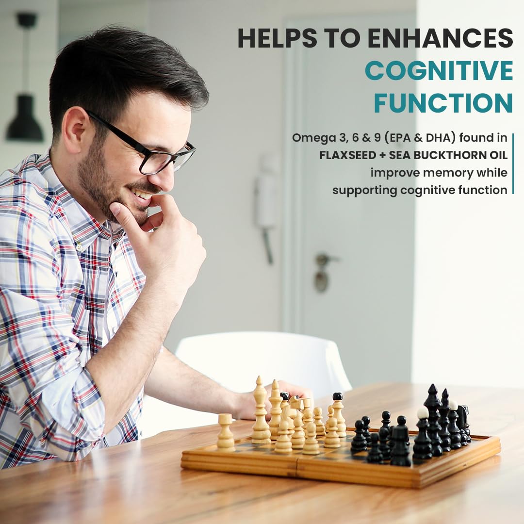 ✅ POWERHOUSE OF 2 VEGETARIAN OMEGA 3 SUPPLEMENTS IN 1 CAPSULE: This Unique combination of Plant sourced Cold Pressed Flaxseed Oil and Sea Buckthorn Berry Oil provides all the benefits of Omega Fatty acids to support joint health, cognitive clarity, and vision, in addition to promoting heart health