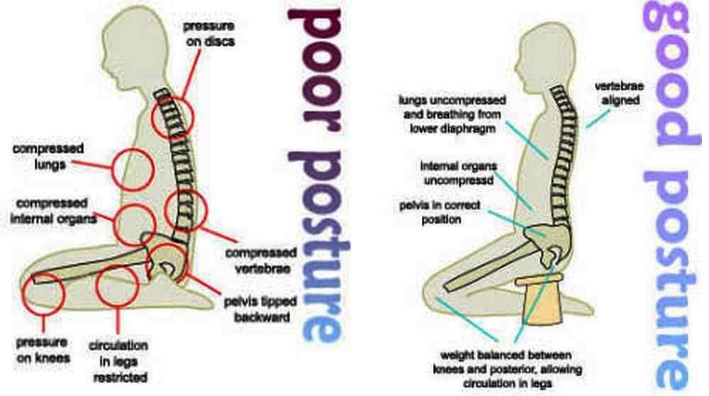 When sit cross-legged, many people experience numbness or tingling in their groins and upper legs.The causes of this are stress in the groin and compression in the knees, both of which reduce blood flow to your legs. When one is kneeling, the pressure is more evenly distributed,& the groin area is less stressed. Longer periods of sitting are now possible without feeling numb or tingly.