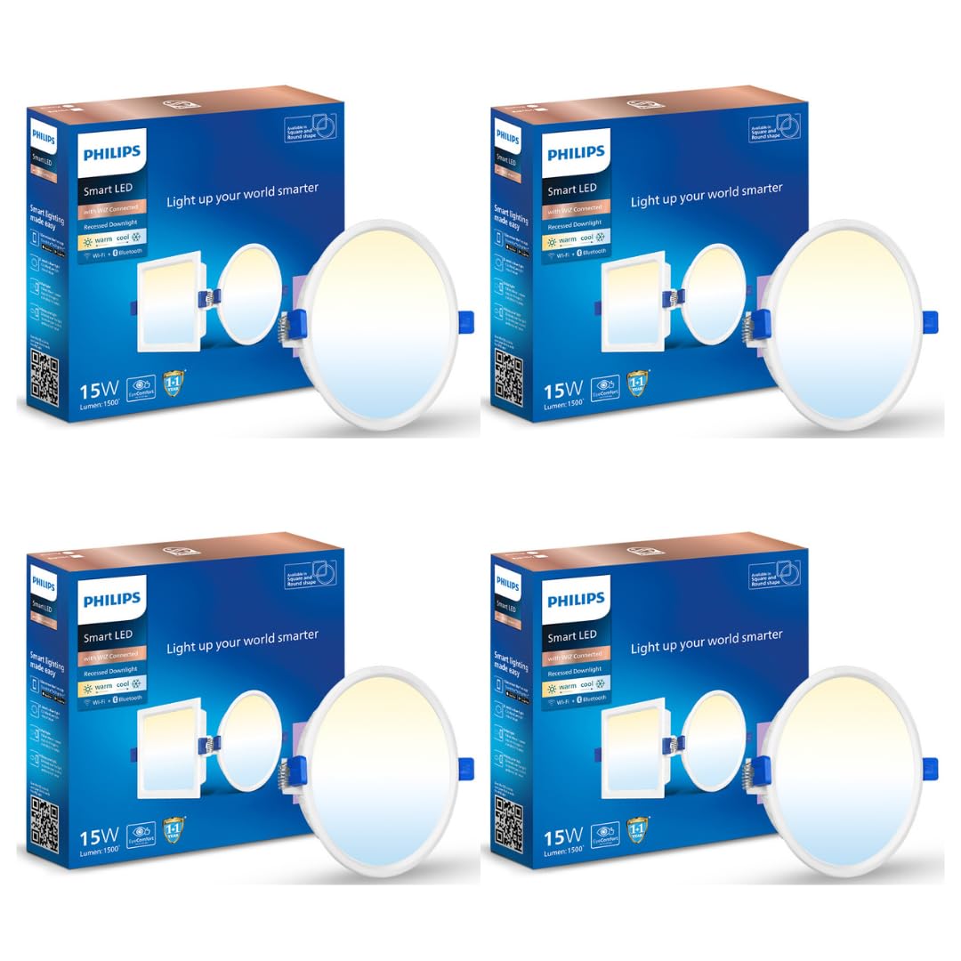 Upgrade your home lighting with the Philips Smart Wi-Fi and Bluetooth LED Ceiling Light, available in round and square shapes. With two wattages (10W & 15W) and different cut-out sizes (4.17 inch & 6 inch), this light fixture offers a wide range of versatile lighting options for any room in your home.Upgrade your home lighting with the Philips Smart Wi-Fi and Bluetooth LED Ceiling Light, available in round and square shapes. With two wattages (10W & 15W) and different cut-out sizes (4.17 inch & 6 inch), this light fixture offers a wide range of versatile lighting options for any room in your home.Relaxation made easy with the ability to dim the lights to a warm glow. Wind down and reduce stress after a long day in a relaxing atmosphere. The Philips Smart Wi-Fi and Bluetooth LED Ceiling Light also features SpaceSense technology, which automatically turns the lights on when you enter a room and turns them off when you leave. This makes it an energy-efficient option for your home.With the Music Sync feature, you can create a party atmosphere in your home. The lights will flash, brighten, and change color in sync with the rhythm of the music. The Philips Smart Wi-Fi and Bluetooth LED Ceiling Light can be easily installed in your home with minimal effort, and you can enjoy hassle-free setup and beautiful lighting options.Upgrade your home lighting with the Philips Smart Wi-Fi and Bluetooth LED Ceiling Light and enjoy a personalized ambiance and energy-efficient lighting.