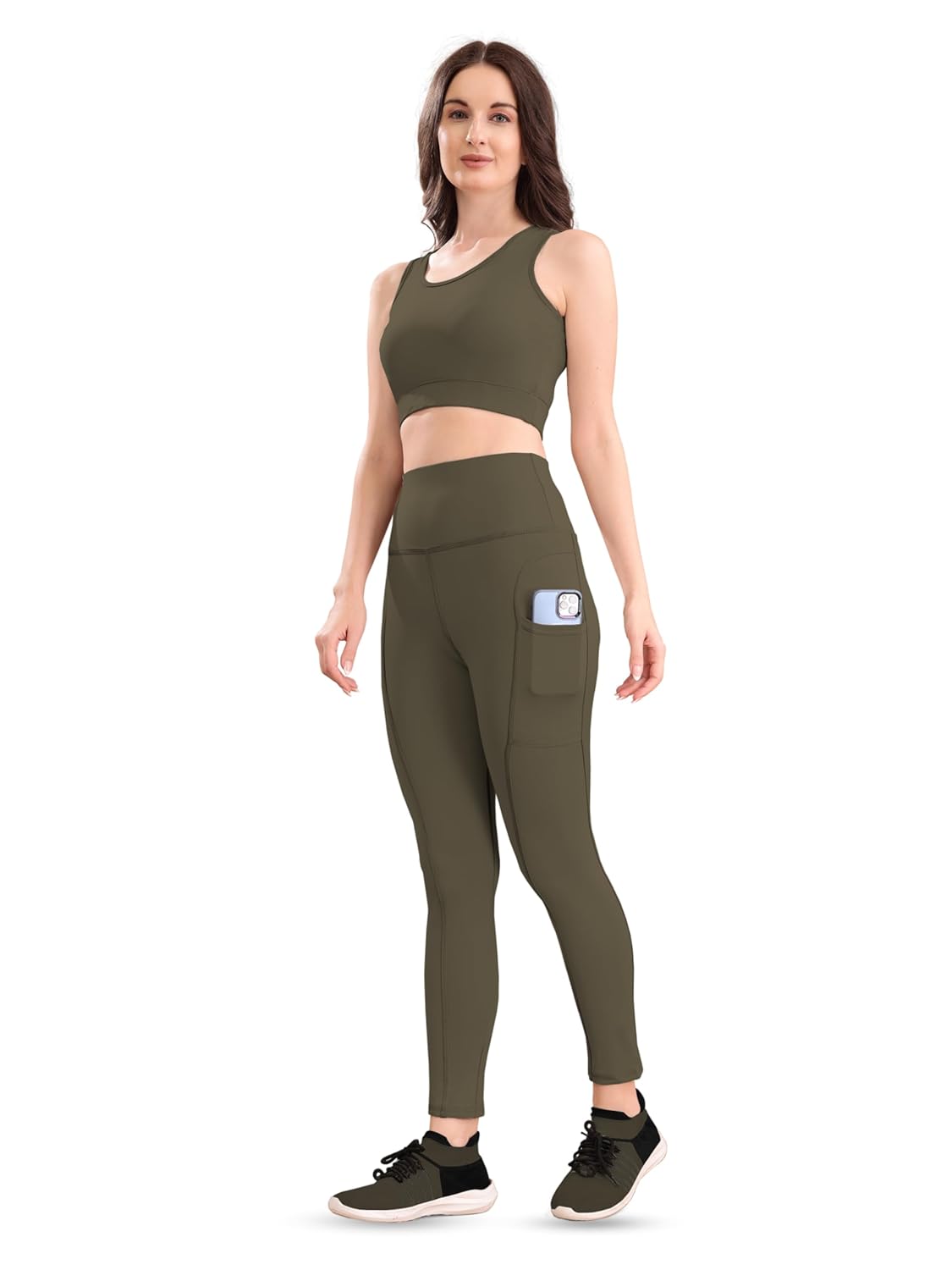 Leggings with Side Phone Pocket, High Waist Yoga Pants with Top, Women’s Sports Co-ord Set, Activewear Set for Women with Sports Bra, Slim Fit Gym Tracksuit for Women, Women’s Running Set with Pocket Leggings, Leggings and Sports Bra Set for Workout, 2 Piece Yoga Suit for Women Athletic Wear