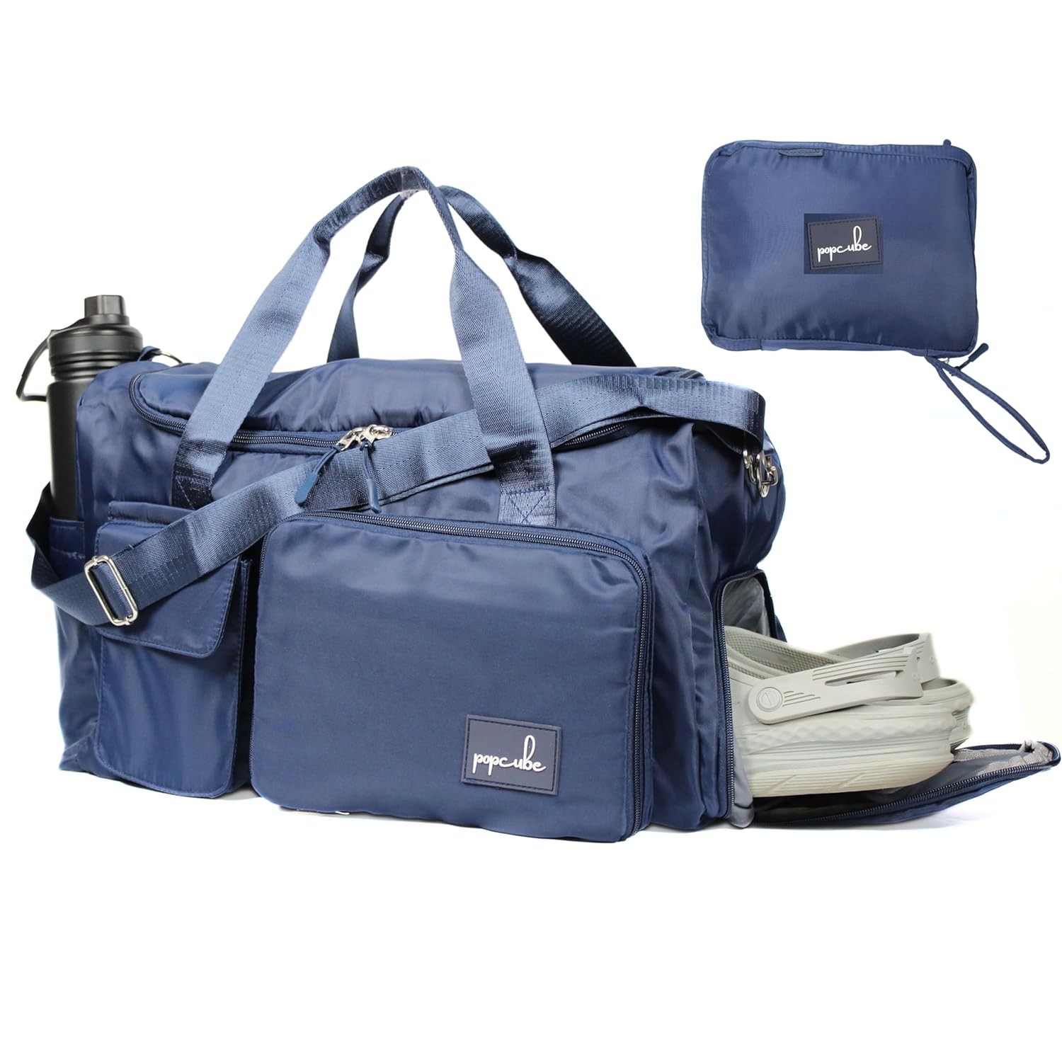 Easily slide your duffle onto trolley bags with a convenient travel sleeve. Perfect for hassle-free movement during trips or at airports.