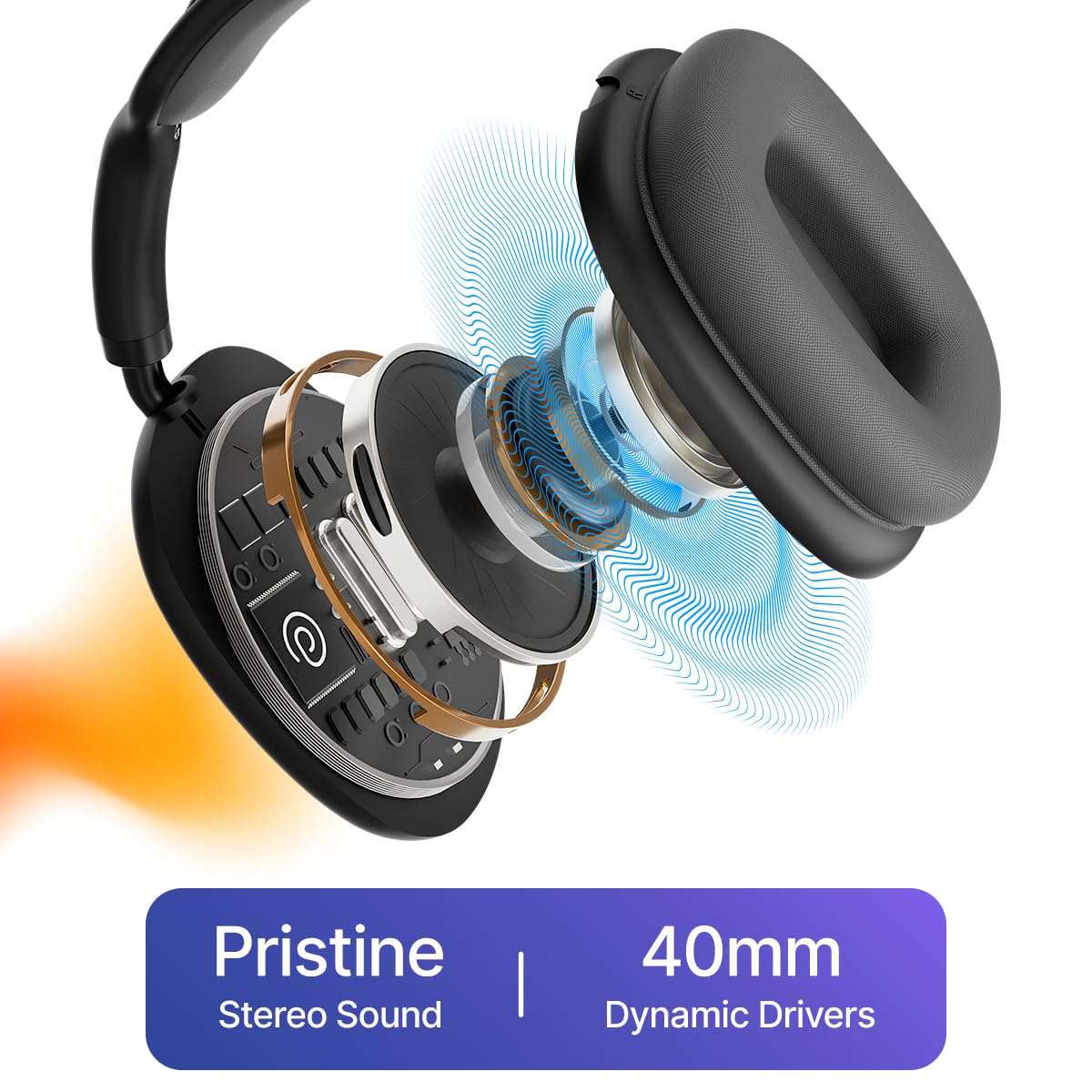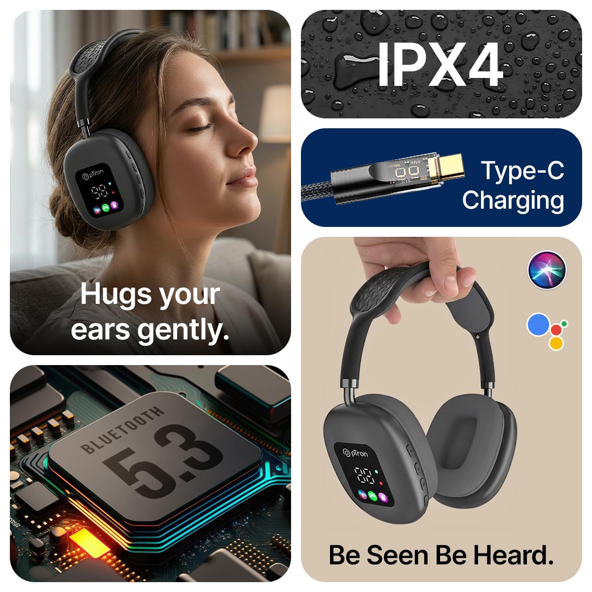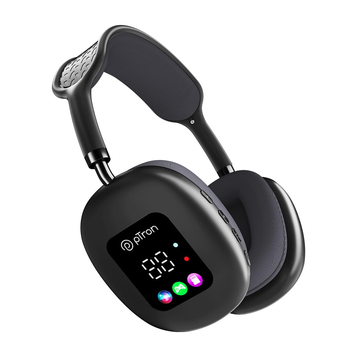 Soft-Cushioned Over-ear Design w/ Adjustable Headband for All-day Comfort & Pressure-free Listening || RGB Display Shows Battery %, Playback Status & Connection Status, Adding Style & Easy Info Access