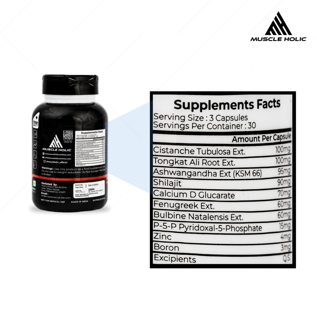 Achieve your ultimate fitness goals with the Muscleholic TESTARISE Testosterone Booster Supplement. This powerful formula is designed to enhance muscle growth, boost stamina, and support overall health.