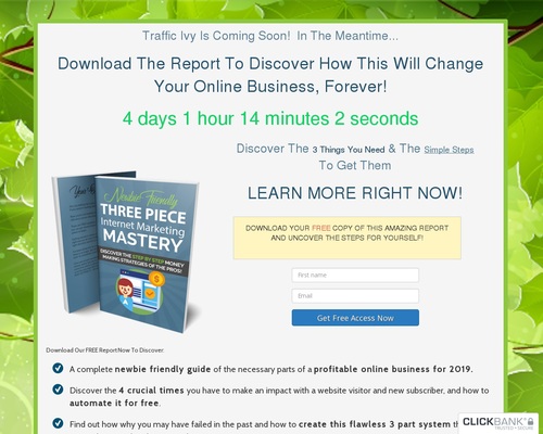This Traffic Ivy solution is just one part of the puzzle when it comes to truly successful online marketing. Yes, everybody needs traffic. Without it, you’re website, store, affiliate offers or videos are just … well… lonely, and very unprofitable.