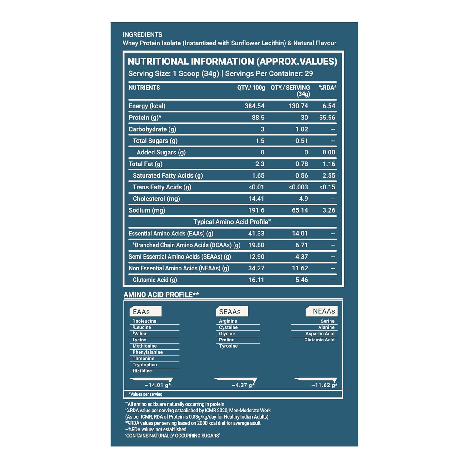Generic Name : Clean Whey 100% Protein Isolate