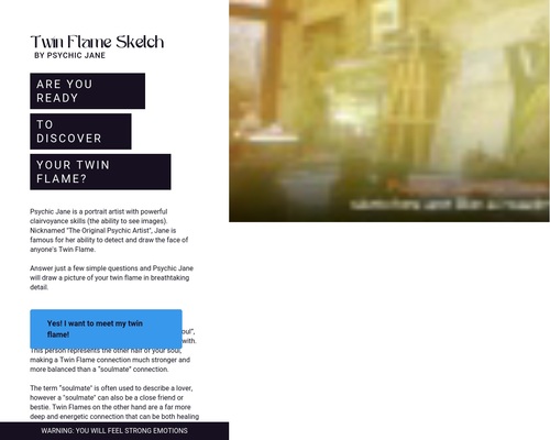 the face of anyone’s Twin Flame.Answer just a few simple questions and Psychic Jane will draw a