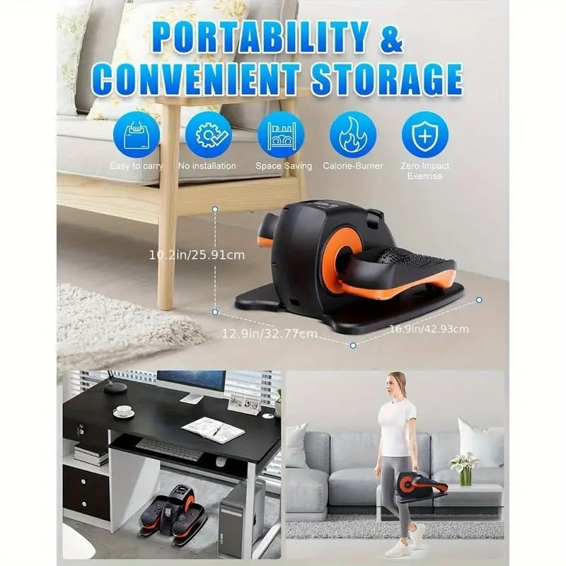 Experience smooth and effortless leg movement with the Acumart Under Desk Elliptical Machine, designed for convenient daily exercise at home or office. This automatic seated pedal exerciser helps keep your legs active while you work, relax, or watch TV. Its compact and portable design easily fits under desks, making it ideal for small spaces and regular use. Built with multiple speed levels, this leg exerciser allows you to customize your workout according to your comfort. The quiet operation ensures you can use it anytime without disturbing others. The included remote control adds convenience, letting you adjust settings without bending down. The clear LCD display helps track your session, while the low-impact motion supports gentle leg activity, making it suitable for daily movement and maintaining an active lifestyle. Whether you’re sitting for long hours or simply want to stay active indoors, the Acumart pedal exerciser is a practical fitness companion.