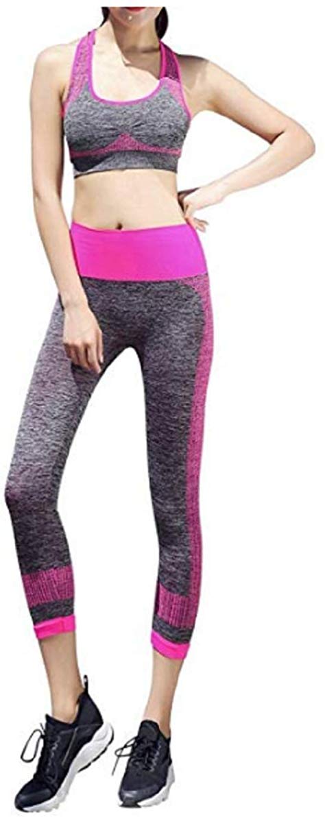 1. Women Tracksuit Yoga Fitness Seamless Racerback Bra+Pants Sets Workout Sports Wear.