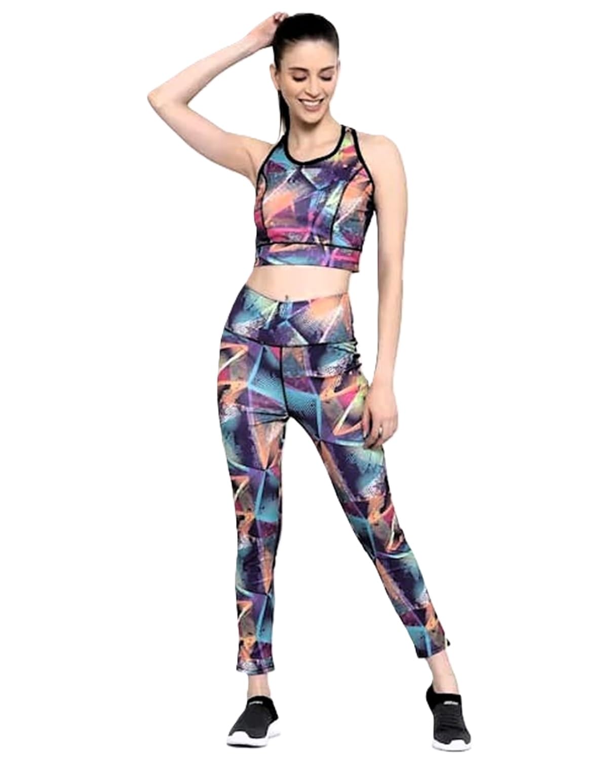 womens Gym Wear Set, Printed Track Pant & Spo …