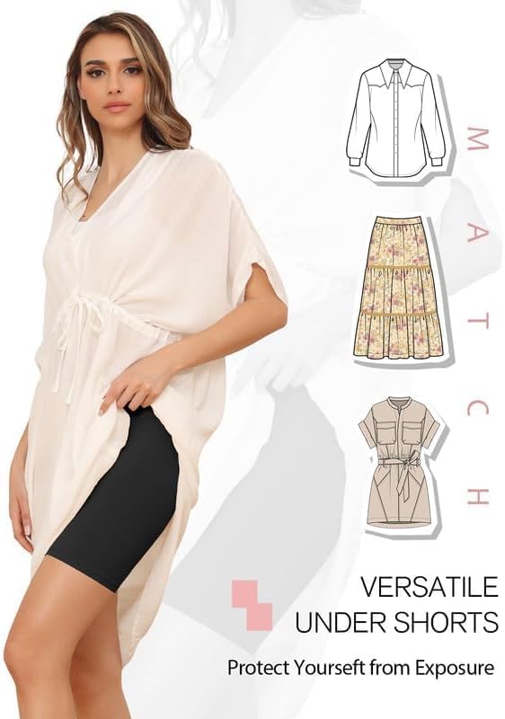 Experience ultimate comfort and versatility with these high-waist bike shorts. Perfect for both athletic activities and everyday wear, these cotton-blend shorts offer excellent coverage and support. The high-waisted design provides a flattering silhouette while ensuring the shorts stay in place during your workout or daily activities. Available in classic colours including grey, black, and white, these shorts are ideal for layering under dresses or wearing on their own for gym sessions. The stretchy fabric allows for unrestricted movement, making them suitable for various activities from yoga to running. The mid-thigh length offers optimal coverage while preventing ride-up during exercise. These versatile shorts feature a smooth waistband that won’t dig in or roll down, providing all-day comfort. Whether you’re heading to the gym, running errands, or looking for comfortable shorts to wear under dresses, these bike shorts are an essential addition to your wardrobe. The durable cotton blend material maintains its shape wear after wear, ensuring long-lasting performance.